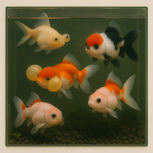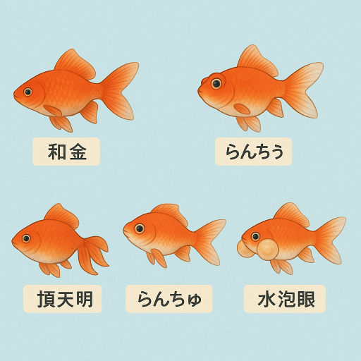 - ランチュウ型:背びれなし+丸い体型。日本の伝統品種に多い。