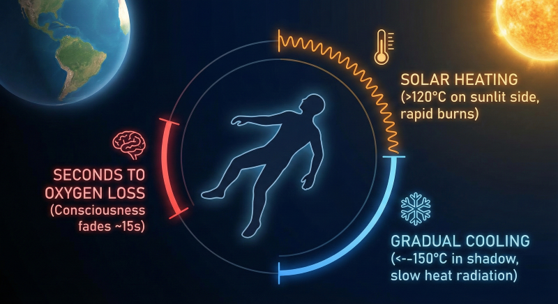 人間が宇宙空間に生身で出たら、どうなるのか。