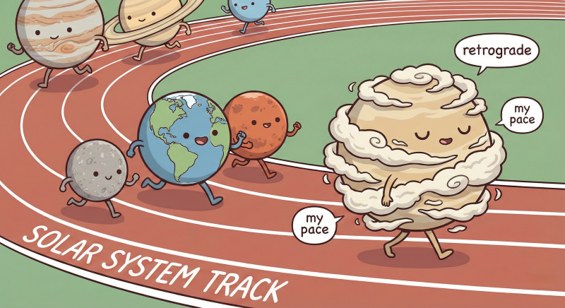 金星の逆回転を見ていると、人間が勝手に決めた「普通」ってやつが、どれだけ局所ルールか分かってきます。