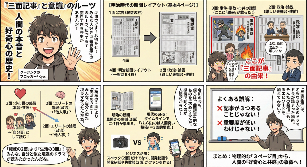 三面記事って、新聞の“脇役”に見えるけど、実は読者と一番近い場所なんだよね。