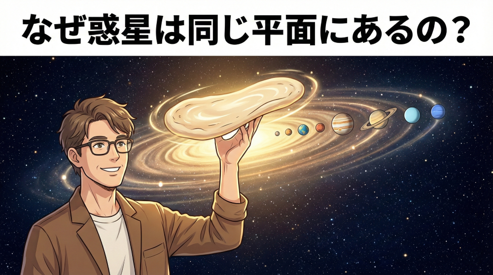 結論から言うと、太陽系は「回転」という秩序で、勝手に平たく整理されたんです。